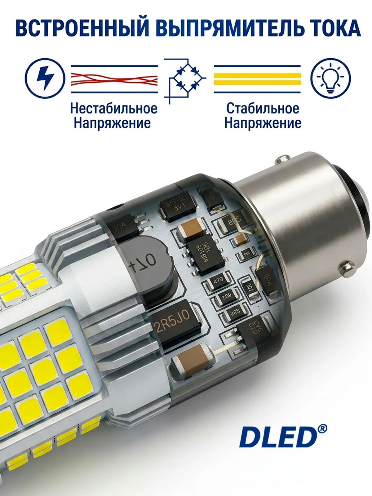 Оснащены встроенным выпрямителем тока, что обеспечивает стабильную работу ламп при переменном или нестабильном напряжении в автомобильной электрической системе. Выпрямитель тока преобразует переменный ток в постоянный, предотвращая возможные скачки напряжения, которые могут повредить светодиоды или нарушить их работу.
