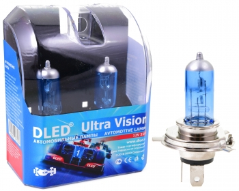 Автомобильные лампы DLED Ultra Vision с цоколем H4 – стильные лампочки ярчайшего свечения, обеспечивающие освещенность дороги на максимально возможном уровне для галогенного автомобильного света.  Характеристики светопотока были улучшены даже в сравнении с недавно выпущенной линейкой Night Vision – теперь яркость светового излучения и дальность освещаемой территории превышает показатели стандартного галогена уже более чем на 150%!