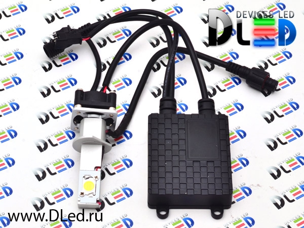 Светодиодная автомобильная лампа с цоколем H1.  На алюминиевом корпусе с кулером автолампы H1 установлено два светодиода CREE общей мощностью 20 Ватт. Световой поток данной лампы составляет 1600 Lm. Для управления работой кулера и стабилизацией напряжения используется отдельный блок, который поставляется в комплекте с лампой. Благодаря компактным размерам самой лампы и активному охлаждению лампу можно использовать в ограниченном пространстве.