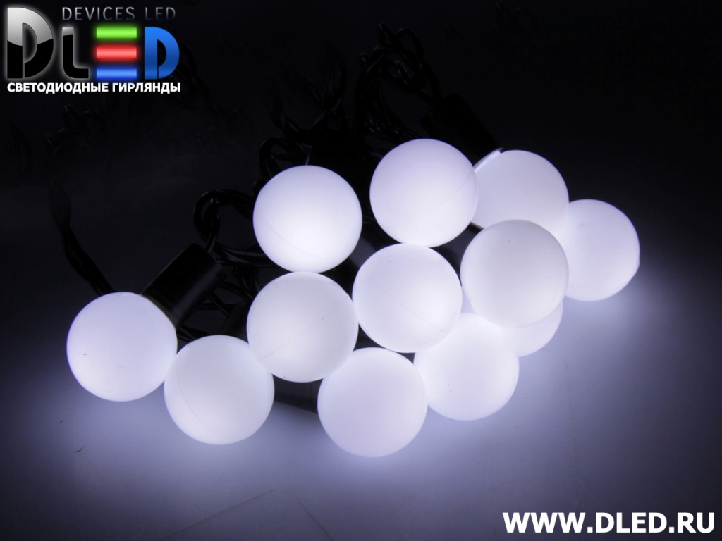 Гирлянда наружная "Метражная" 200Led, мигание, провод темный, с насадкой "шарики 1.5см", Белый