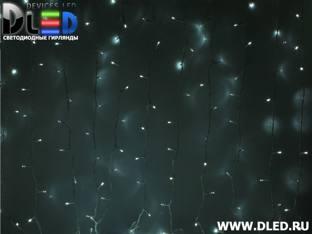 Гирлянда наружная "Занавес" 2х6м 1440Led, мерцание, нить белая, Белый
