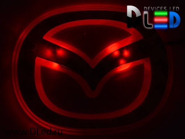 Светящаяся эмблема для Mazda 3 двухцветная "Синий-Красный"