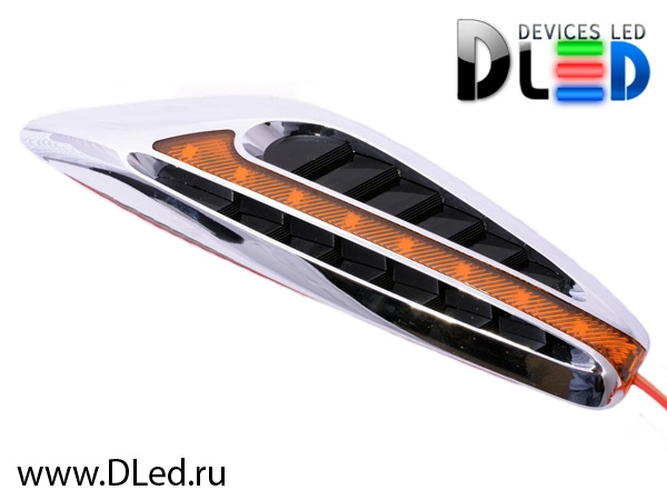 Светодиодный повторитель поворота выполнен в форме спортивного воздухозаборника. Установка происходит с помощью специального монтажного 3M скотча, который надежно зафиксирует повторитель на автомобиле. Реле повторителя сигнала поворота имеет два управляющих входа. Установка светодиодных повторителей поворотников сделает ваши маневры заметнее, а следовательно повысит безопасность дорожного движения. Оригинальный и красивый внешний вид украсит ваш автомобиль.
