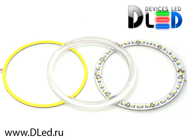 В нашем магазине представлены несколько видов ангельских глазок. Самые популярные это светодиодные ангельские глазки SMD и ангельские глазки COB. В SMD светодиоды расположены на одинаковом расстоянии и имеют точечное, мягкое свечение. COB глазки выглядят как один большой светодиод, занимающий всю площадь обода и состоящий из множества светящихся кристаллов. При этом COB имеет сплошное неразрывное свечение, более яркое и заметное чем SMD ангельские глазки. Ко всему прочему, COB ангельские глазки обладают стабилизатором напряжения который защищает светодиоды от скачков в сети и тем самым продлевает их срок службы.