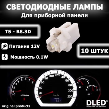 Автолампа светодиодная T5 - B8.3D - 1 Dip LED (Белая) (10шт)