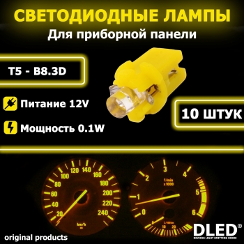 Автолампа светодиодная T5 - B8.3D - 1 Dip LED (Желтая) (10шт)