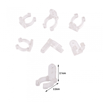Выполнены из прозрачного пластика. Монтируются на поверхность при помощи саморезов, световой шнур вставляется в зажимную часть клипсы.