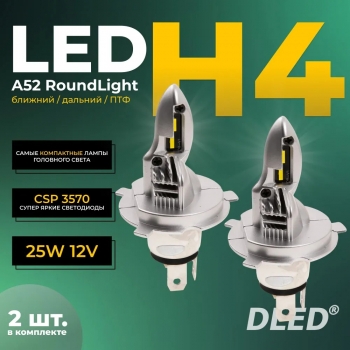 Комплект светодиодных ламп DLED. Тонкий радиатор из анодированного алюминия позволяет разместить светодиодные чипы максимально близко и сохранить фокусное расстояние штатной галогенной лампы. Мощная система охлаждения обеспечивает оптимальный температурный режим для работы светодиодов.