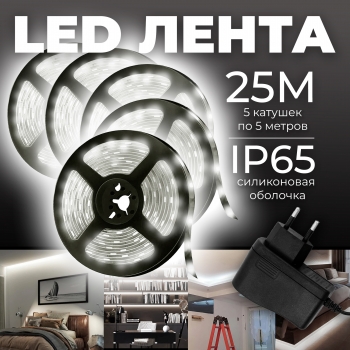 Комплект влагозащищенной светодиодной лентой SMD 2835 (60 LED IP65 Холодный белая 6500K) с блоком питания - 5 шт.