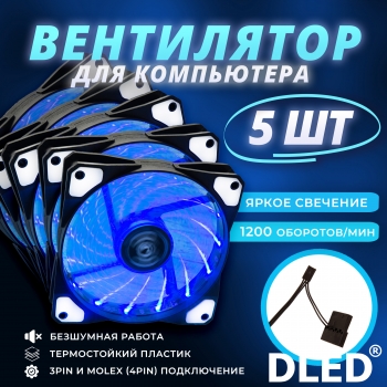 5шт: Вентилятор компьютерный Бренд DLED "Синий" 120 мм LED Molex 4 pin V2 - 5 шт.