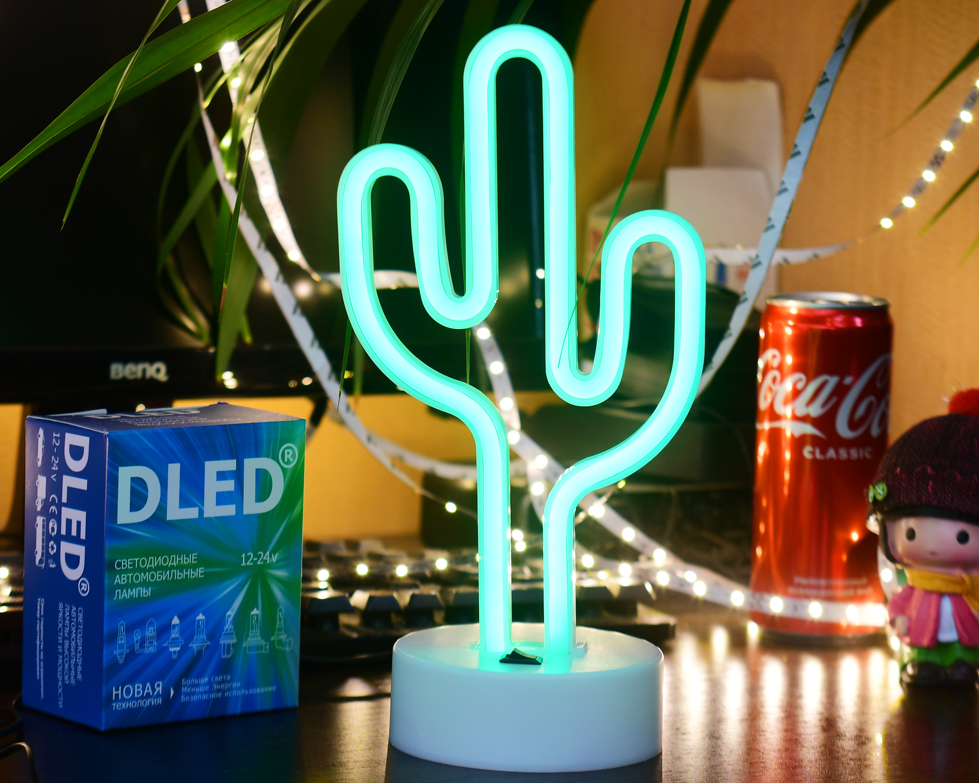 Настольный неоновый светильник "Кактус" Зелёный DLED