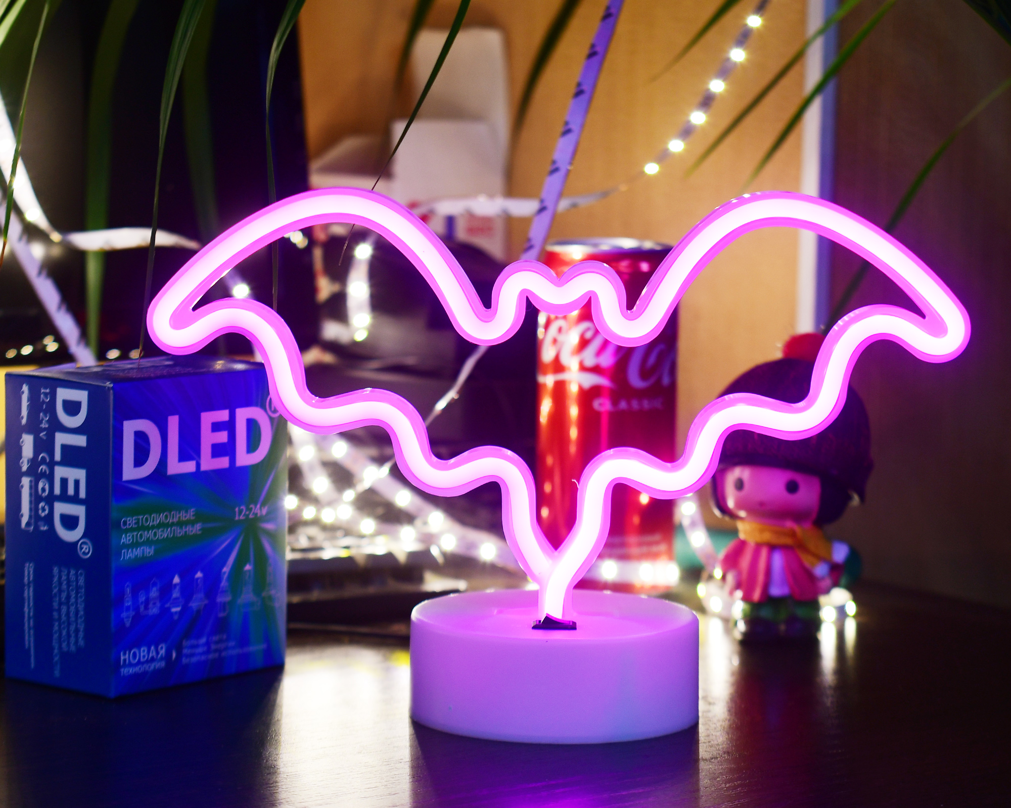 Настольный неоновый светильник "Летучая мышь" розовый DLED