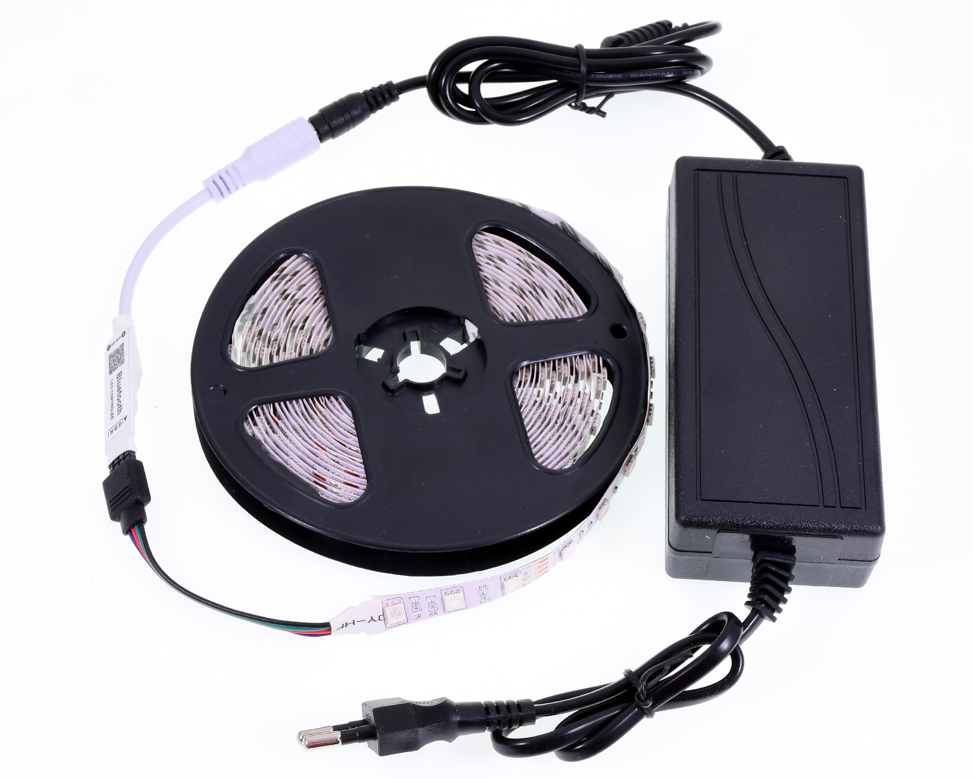 Готовый комплект включает в себя блок питания DLed Street , Bluetooth мини контроллер DLED и пять метров многоцветной светодиодной ленты DLED SMD 5050 60 светодиодов на метр. С помощью светодиодной ленты можно эффектноподсветить мебель, потолок, стены, различные ниши, лестницы, и т.д., все ограничено только вашей фантазией. Для создания подсветки в помещениях с повышенной влажностью и на улице необходимо использовать влагозащищенную ленту. Монтаж светодиодной ленты не вызовет затруднений даже у ребенка, в комплекте вы найдете все необходимое.