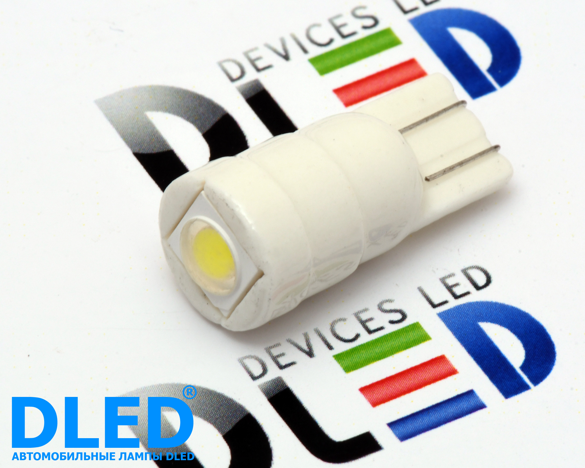 Светодиодная автомобильная лампа DLED с цоколем T10 W5W 1W, оснащаемая 1 светодиодом типа 7070 SMD керамика. Общая яркость автолампы составляет 130 lumen, а мощность – 1 ватт белого цвета. Лампочки T10 предназначаются для установки в габаритные огни автомобиля, указатели поворота, также применяются в качестве источника освещения салона, багажника и бардачка, для подсветки номера, панели приборов и т.д. При установке светодиодной лампы взамен лампы накаливания вы получите более высокую яркость при гораздо меньшем энергопотреблении. Как следствие разгружается работа генератора, снижается нагрузка на бортовую сеть и проводку автомобиля а также снижается расход топлива.