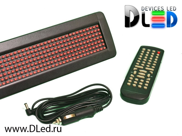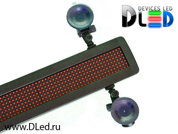 Автомобильная бегущая строка (светодиодное электронное табло) предназначена для вывода информации и привлечения к ней внимания. Чаще всего используется как рекламное средство. Данная бегущая строка русскоязычная, программируется через пульт дистанционного управления. Питание бегущей строки осуществляется от прикуривателя автомобиля. Разрешение автомобильной строки составляет 7x95 точек. Вес 3кг. Устанавливается табло с помощью мощных присосок на заднее стекло автомобиля.
