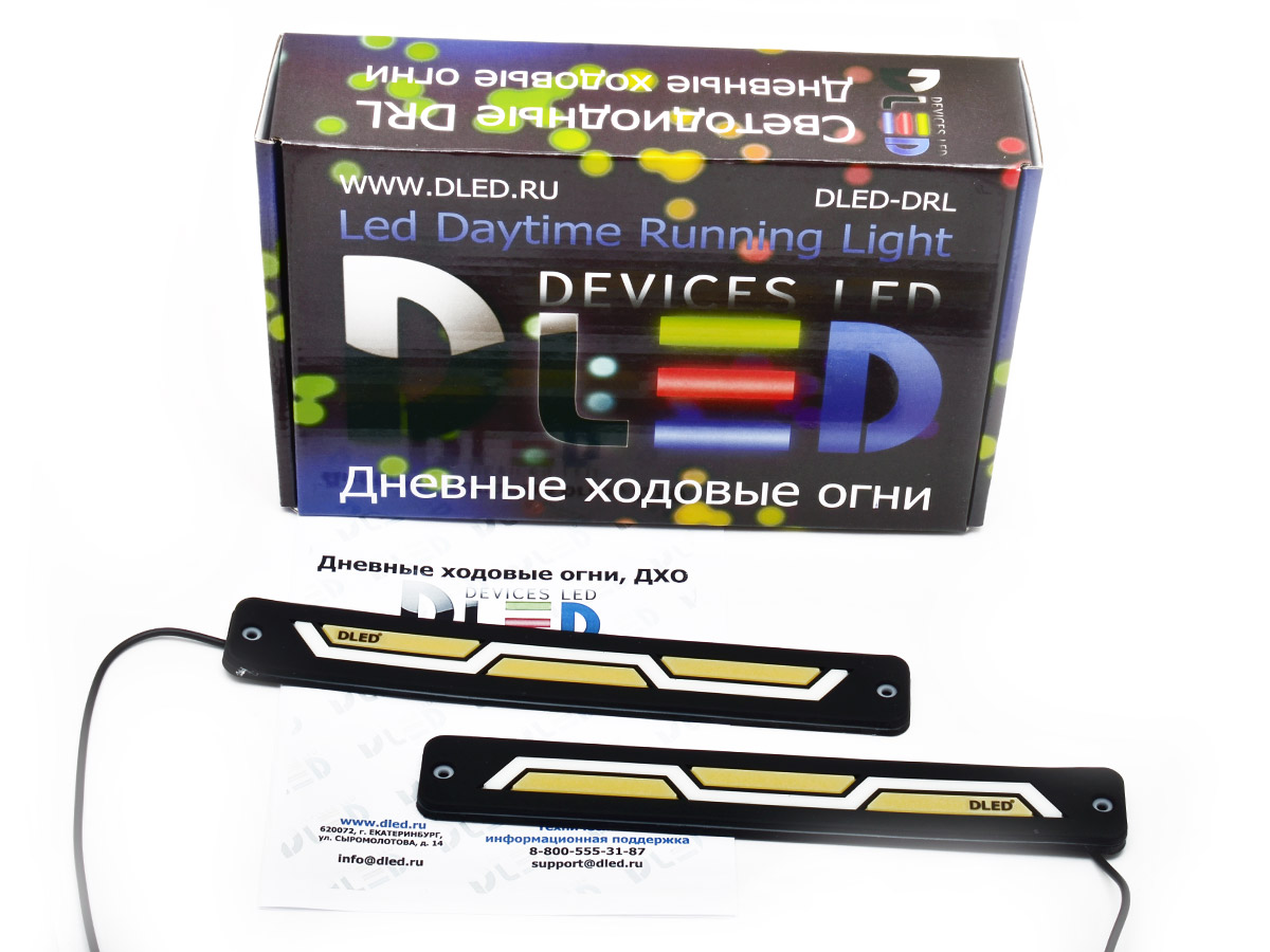 При производстве дневных ходовых огней от компании DLED за основу источника света были взяты высокотехнологичные светодиоды. Данное решение позволило получить максимальные показатели световой отдачи и излучаемого потока света, а одним из главных факторов является минимальная нагрузка на генератор и аккумулятор, также большой срок службы изделия.