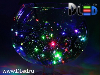 Гирлянда наружная "Метражная" 100Led, мигание, провод темный, Красно-сине-зеленый