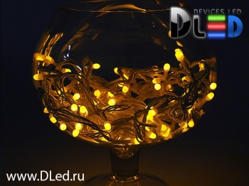 Гирлянда наружная "Метражная" 200Led, мигание, провод белый, Желтый