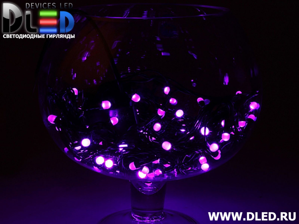 Гирлянда наружная "Метражная" 200Led, мигание, провод темный, Фиолетовый
