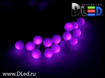Гирлянда наружная "Метражная" 100Led, fixing, с насадкой "шарики 2.5см", темный провод, Фиолетовый