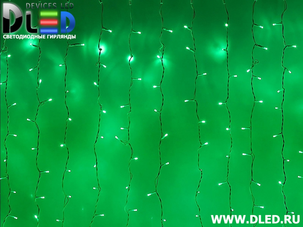 Гирлянда наружная "Занавес" 2 х 3 м 760Led, фиксинг, нить белая, Зеленый