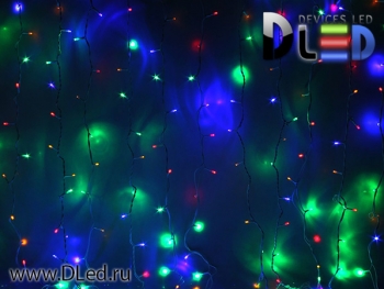 Гирлянда наружная "Занавес" 2 х 6 м 1440Led, фиксинг, нить белая, Мульти