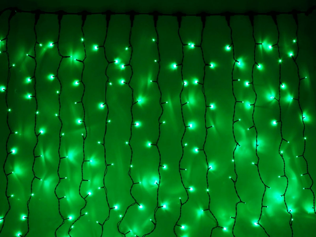 Гирлянда наружная "Занавес" 2 х 6 м 1440Led, фиксинг, нить темная, Зеленый