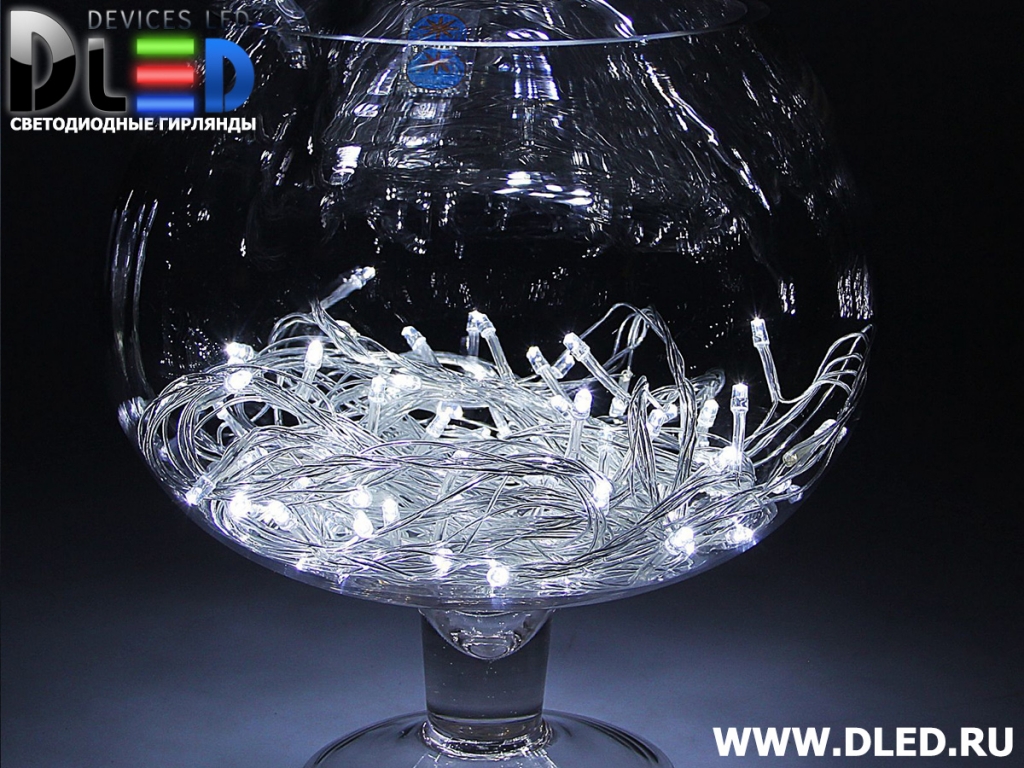 Гирлянда внутренняя "Метражная" 100Led 10м, фиксинг, провод темный, Белый