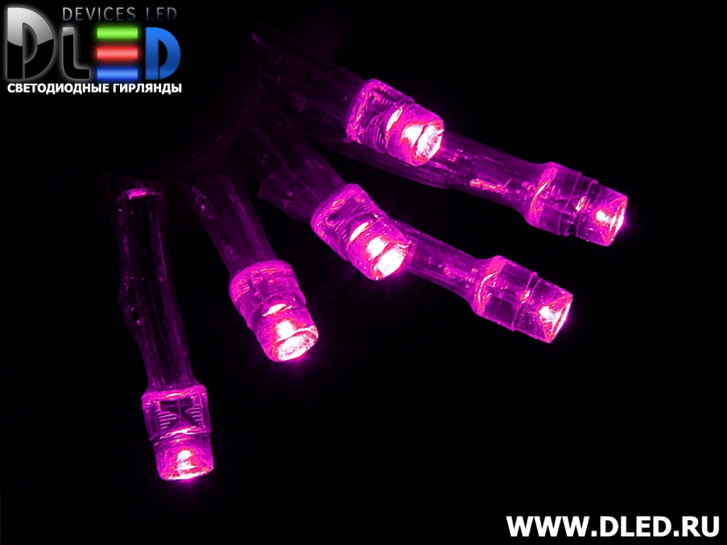 Гирлянда внутренняя "Метражная" 100Led 6.5м, мигание, провод силиконовый, Розовый