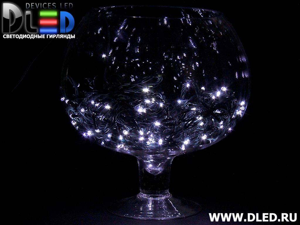 Гирлянда внутренняя "Метражная" 150Led 13м, мигание, провод темный, Белый