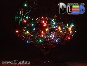 Гирлянда внутренняя "Метражная" 50Led, мигание, провод темный, Мульти