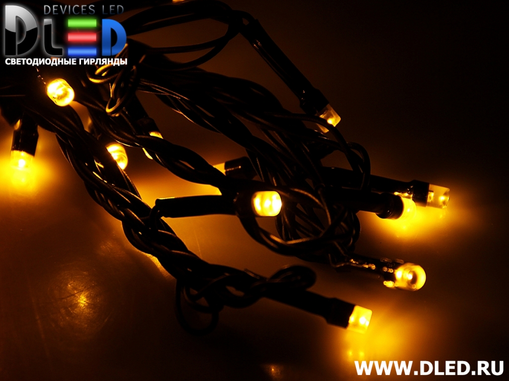 Гирлянда внутренняя "Метражная" 50Led 5.2м, мигание, провод темный, Желтый