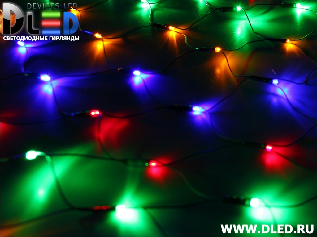 Гирлянда внутренняя "Сеточная" 144Led 1.2м х 1.1м, мигание, провод темный, Мульти