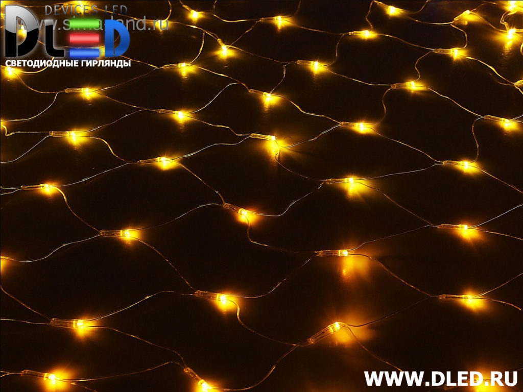 Гирлянда внутренняя "Сеточная" 240Led 1.5м х 1.5м, мигание, провод силиконовый, Желтый