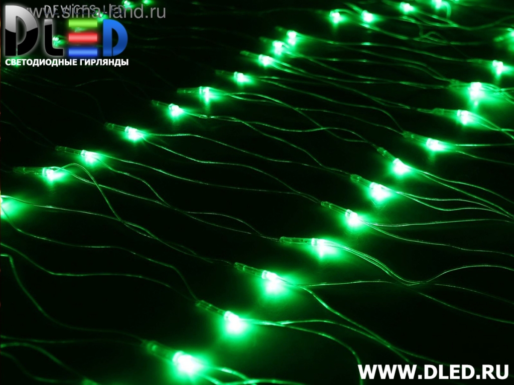 Гирлянда внутренняя "Сеточная" 96Led 1м х 0.7м, мигание, провод силиконовый, Зеленый