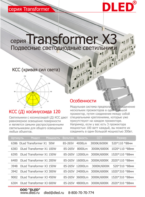 Серия прожекторов DLed Transformer получила название благодаря уникальной, инновационной модульной системе, разработанной инженерами компании. Модульная система предполагает объединение нескольких прожекторов в один большой прожектор, путем соединения между собой специальными креплениями, которые уже присутствуют на каждом прожекторе. Например, если у вас есть 3 прожектора мощностью 70 ватт каждый, вы можете их соединить в один большой мощностью 210 ватт!