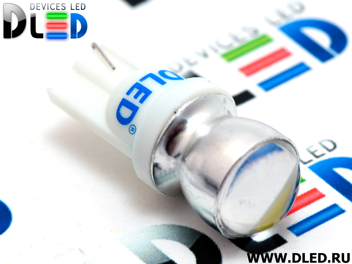 Светодиодная автомобильная лампа DLED с цоколем T10 W5W мощностью 1W, оснащаемая 2 светодиодами типа SMD5730. Общая яркость автолампы составляет 90lumen.