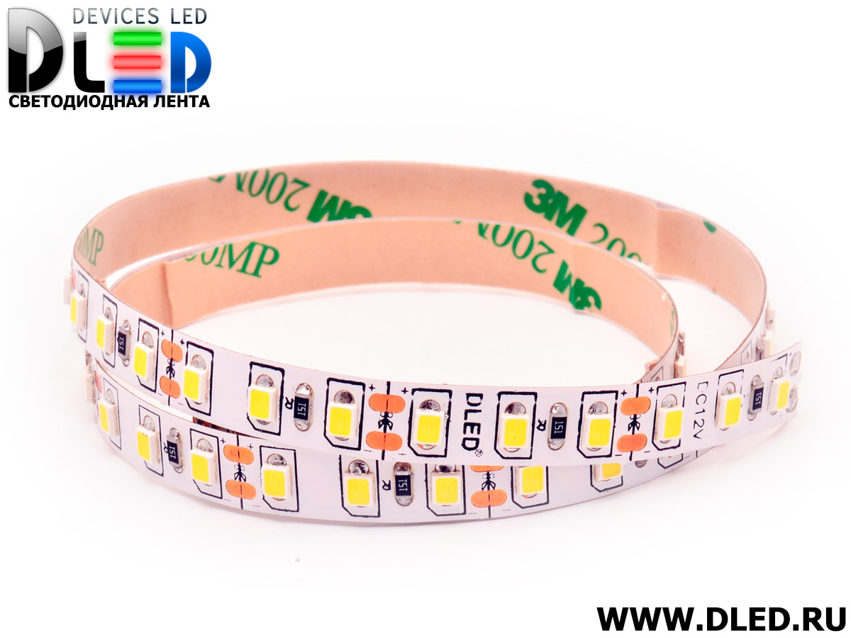Гибкая светодиодная лента SMD 2835 (120 Светодиодов на метр).  Светодиодная лента SMD 2835 (120 LED)  идеально подойдёт для подсветки внутри дома. Есть масса интересных вариантов использования светодиодной ленты. Светодиодной лентой можно очень интересно подсветить натяжной потолок поместив её под сам натяжной потолок. Светодиодная лента SMD 2835 (120 LED) является самоклеющейся и имеет белую основу, что позволяет легко установить светодиодную ленту на потолок и сделает её в выключенном состоянии незаметной.  Световой поток данной светодиодной ленты составляет 1200 lm. Благодаря высокой яркости лента идеально подойдет для полноценного освещения. Для наилучшего охлаждения рекомендуется ленту устанавливать на алюминиевый профиль.