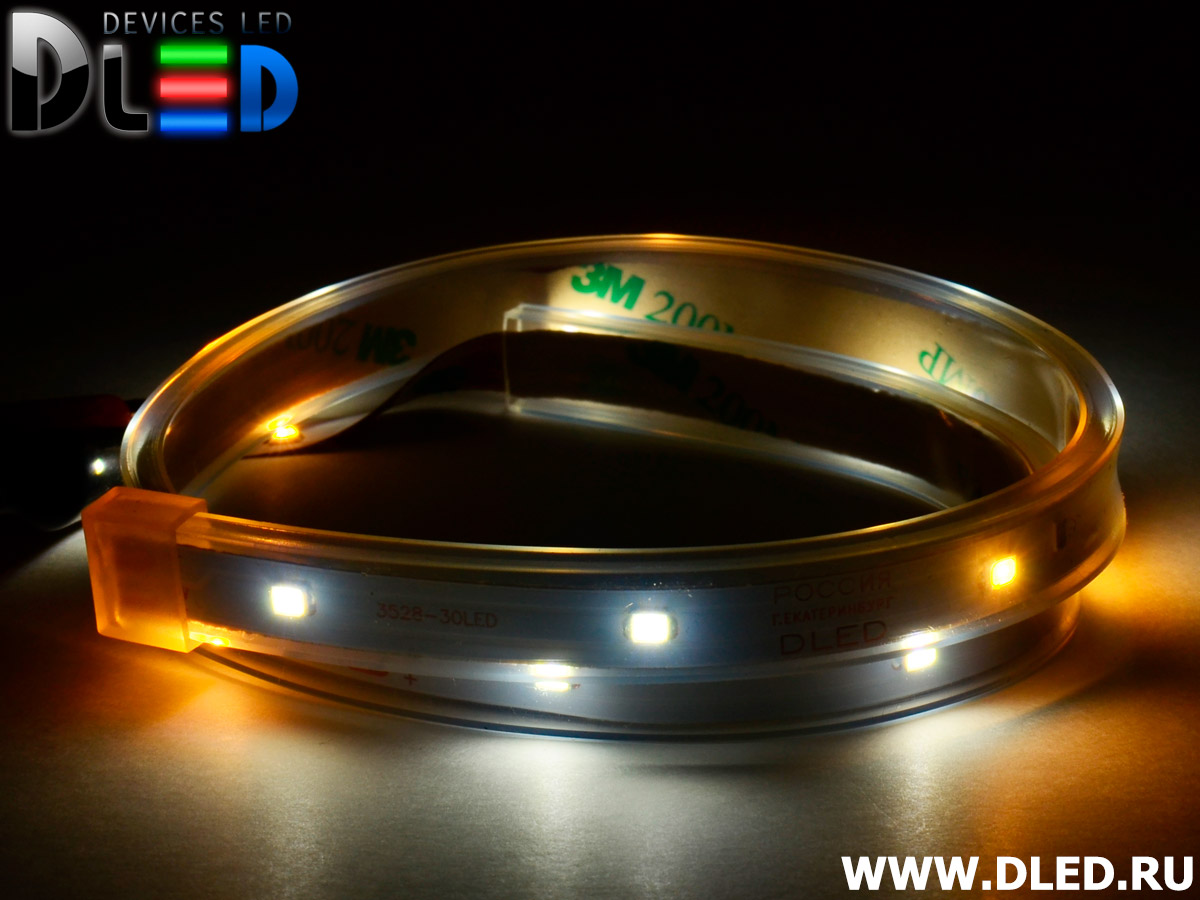 Влагозащищённая светодиодная лента SMD 2835 (30 LED) ip67 2Белый + Теплый белый