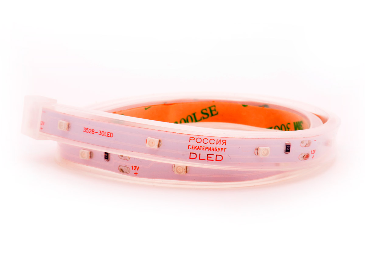 Лента SMD 3528 30LED надежно защищена герметичной силиконовой трубкой, благодаря чему надежно защищена от любых неблагоприятных происшествий, таких как перепады температуры, механические повреждения, загрязнения, намокание. Может размещаться на наружных объектах, в бассейнах и водоемах, на днище транспортного средства и во многих других сложных для подсветки местах, куда нельзя поместить ленту с более низкими степенями защиты.