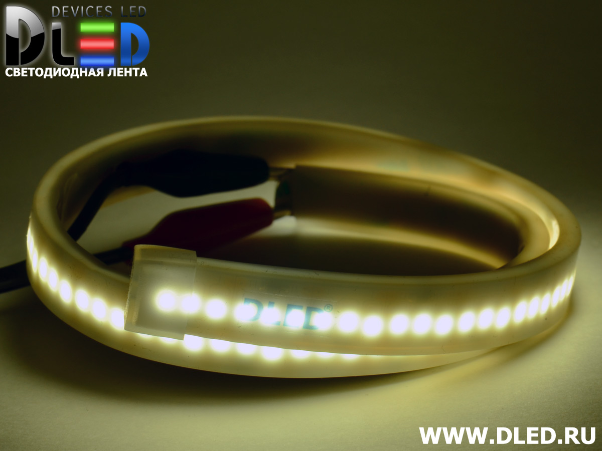 Лента SMD 3528 240LED надежно защищена герметичной силиконовой матовой трубкой, благодаря чему надежно защищена от любых неблагоприятных происшествий, таких как перепады температуры, механические повреждения, загрязнения, намокание. Может размещаться на наружных объектах, в бассейнах и водоемах, на днище транспортного средства и во многих других сложных для подсветки местах, куда нельзя поместить ленту с более низкими степенями защиты.