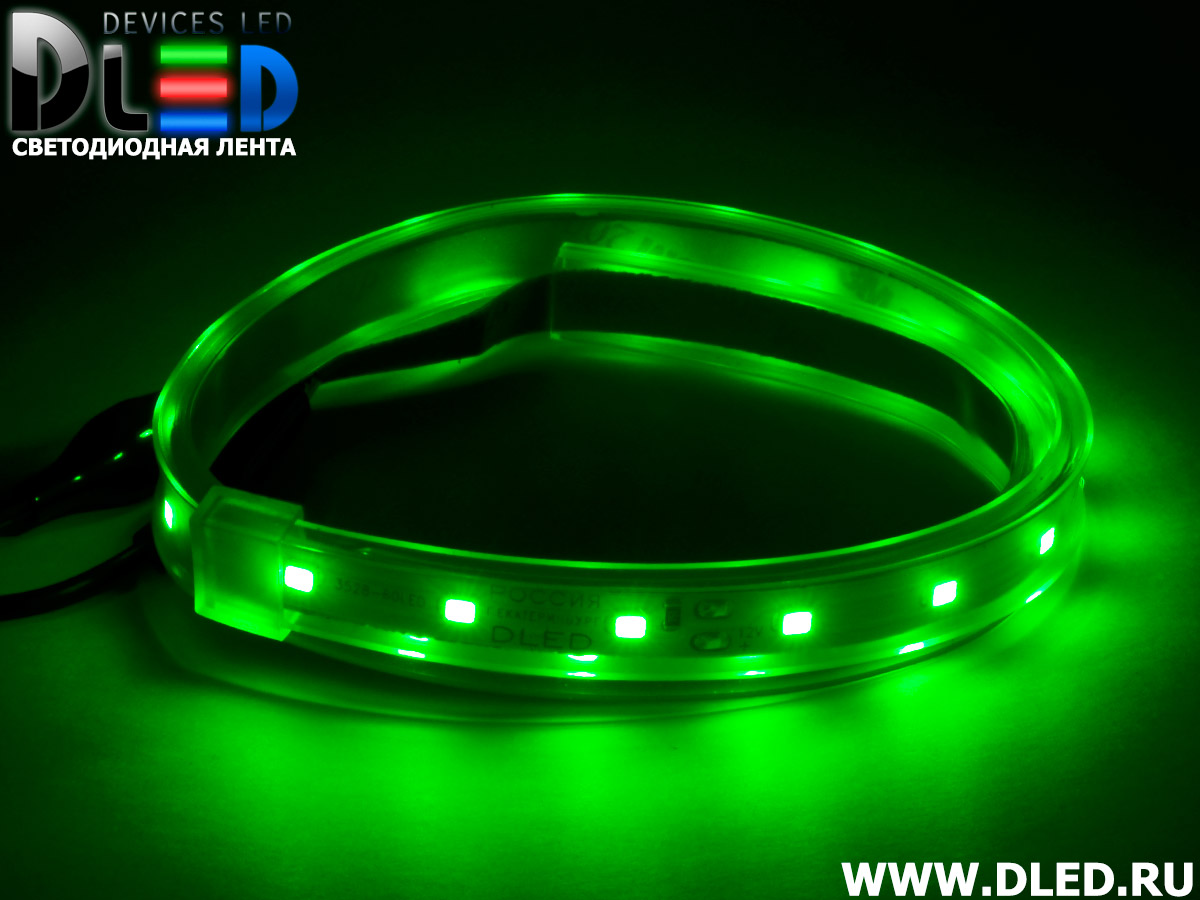 Влагозащищённая светодиодная лента в трубке SMD 2835 (60 LED) ip67 Зеленый